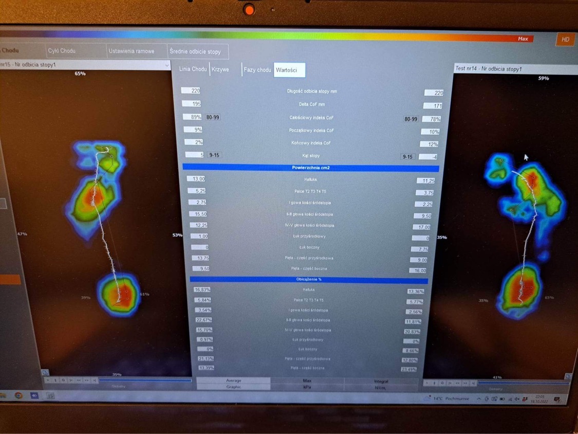 • badanie stóp na podoskopie/na macie tensometrycznej